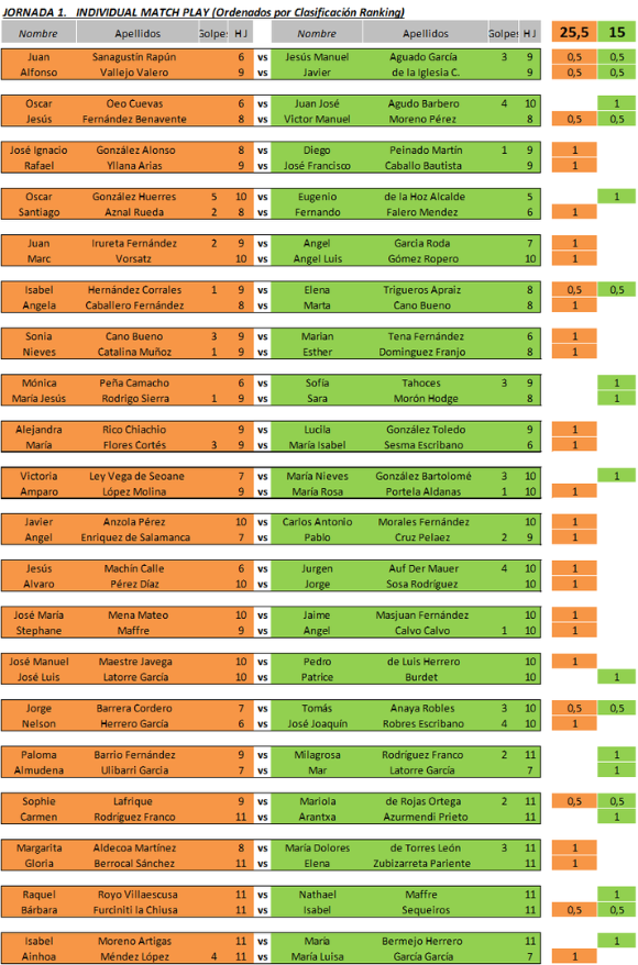 PARTIDOS INDIVIDUALES MATCH PLAY :