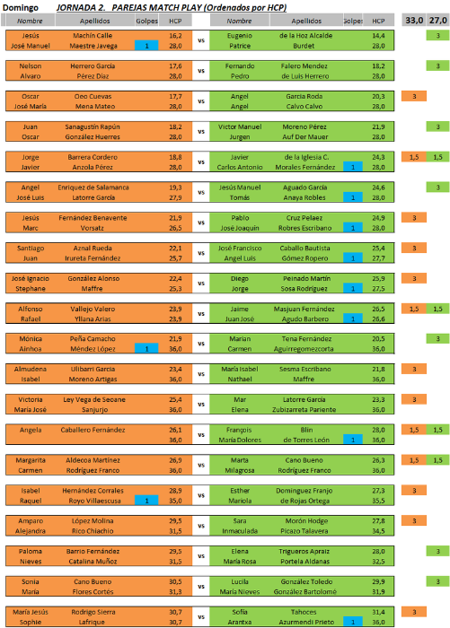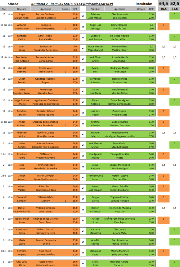 RESULTADOS RYDER 22 - Jornada Sábado Match Play Parejas (scramble-mejor bola):